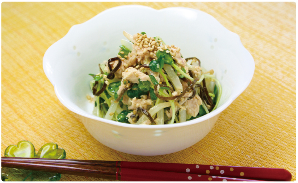 『かいわれ大根ともやしのシーチキン♡塩昆布サラダ』のレシピをご紹介します!