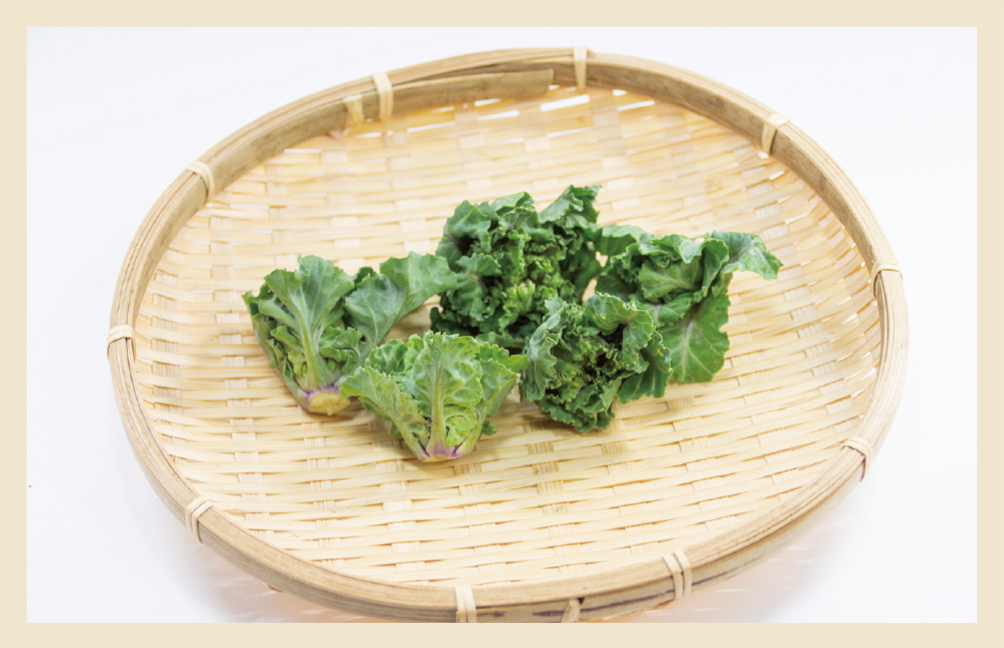 青汁で有名なケールと芽キャベツを交配して生まれた「プチベール」。プチベールは、フランス語で「小さな緑」という意味ですが、1990年に日本で生まれました。世界初の結球しない芽キャベツで、葉にフリルがあり、まるで八重咲カーネーションのような華やかな野菜です。味はクセがなく、糖度がミカンやイチゴと同じ11~13度と甘味もあるため、サッとゆでただけでも美味しくいただけます。付け合わせ、サラダ、炒め物など春キャベツやブロッコリーと同じような調理法で食べられます。栄養バランスもよく、風邪予防や美肌効果が期待できるビタミンCはケールの倍以上、β-カロテンはカボチャの約3倍含みますので、ぜひこの冬の健康対策にいかがですか。