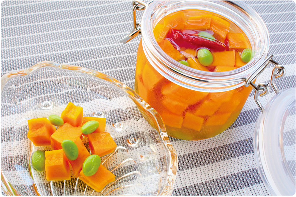 『コリンキーと枝豆のサイコロ♡甘酢漬け』のレシピをご紹介します!