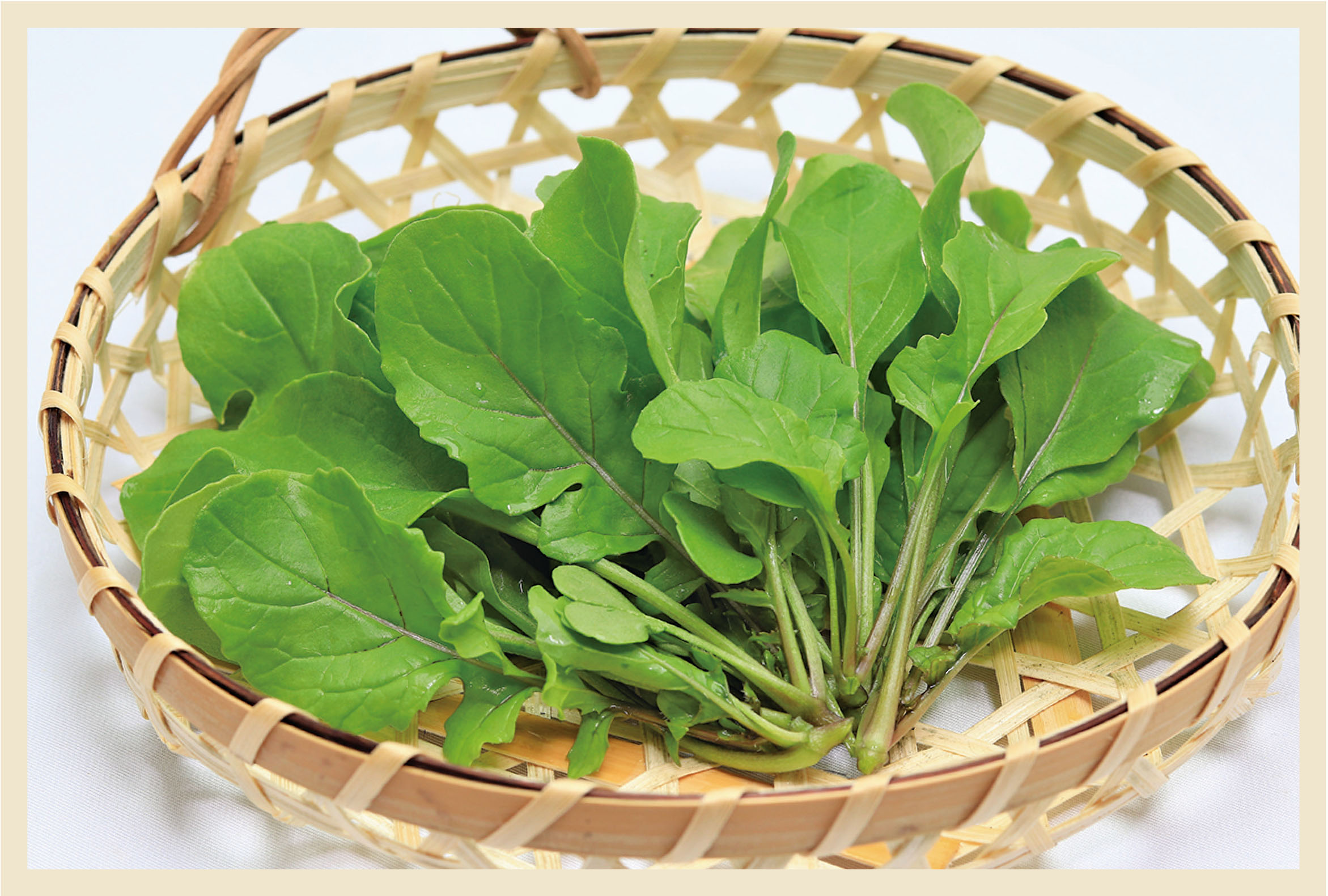 その昔、クレオパトラが美肌効果を期待して食べていたといわれるハーブ「ルッコラ」。イタリア料理をはじめ、フラン料理など世界各国で使われています。スーパーでは馴染みがないと思われますが、ミックスベビーリーフの材料に、ルッコラの若葉がよく使われます。ほうれん草の約2倍のビタミンC、ゴマを思わせる風味と抗酸化作用、抗菌作用が期待できるピリッと辛い「アリルイソチオシアネート」を含みます。この辛み成分は、大根、からし、ワサビに含まれるものと同じで、ビタミンCと同様に水や熱に弱いため、辛みや風味を生かすにはサラダなど、生でいただきましょう。また、油で加熱すると脂溶性のビタミンA、Eの吸収率がアップし、量もたくさんいただけます。肉料理、ピザ、生ハム、オリーブ油との相性は抜群です。育てやすいため、家庭菜園にもお勧めです♪