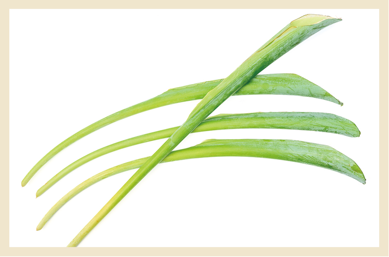 「青ずいき」は、細かい穴が多く開いている葉柄を、干さずに食す夏野菜で、芋は食べない品種です。味はシャキシャキと淡白ですが、スポンジ状のため味がよく染み込み、酢の物、煮物、味噌汁の具、サラダ、刺身のツマなどに使います。主に高知県で栽培され、ハウス栽培で1年中出荷しています。低カロリーで食物繊維が多く、マンガンがタンパク質、糖質、脂質の代謝を助けて、カルシウム、ビタミンKとともに骨の形成促進も期待されるので、女性には嬉しい野菜です。店頭にない時は、ネット販売もありますのでぜひ一度お試しを♪