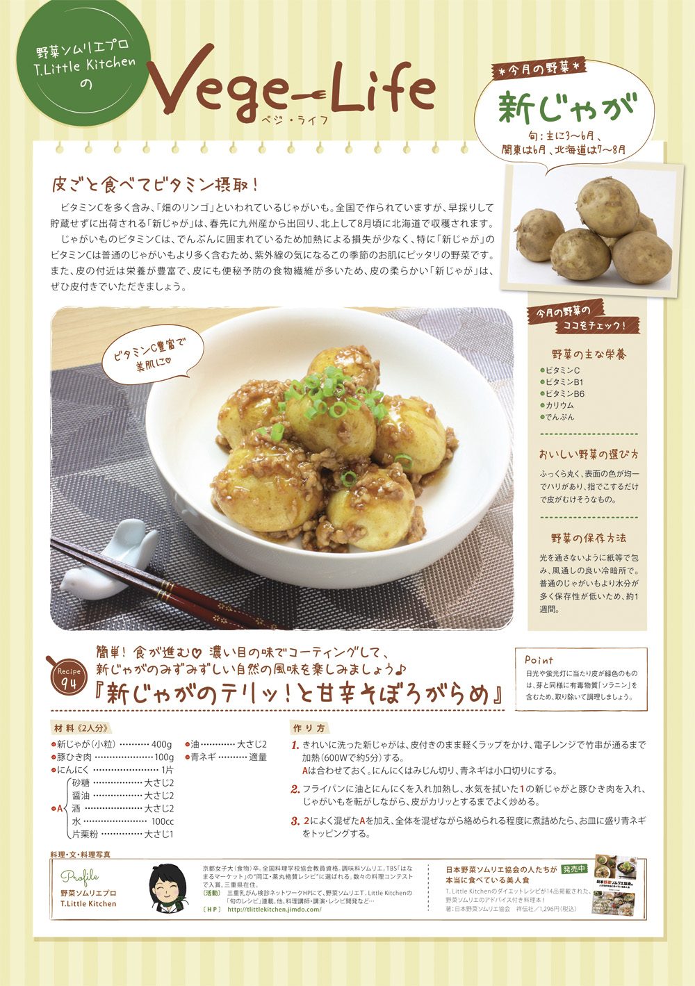 freeK92(5月号)の野菜ソムリエプロ T.Little KitchenのVege-Life(ベジ・ライフ)では、旬の食材「新じゃが」を使ったレシピをご紹介。