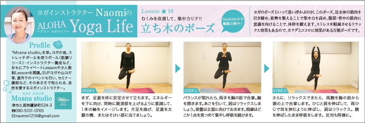 freeK100号(1月号)の「ヨガインストラクターNaomiのALOHA Yoga Life(アロハ ヨガライフ)」では、
