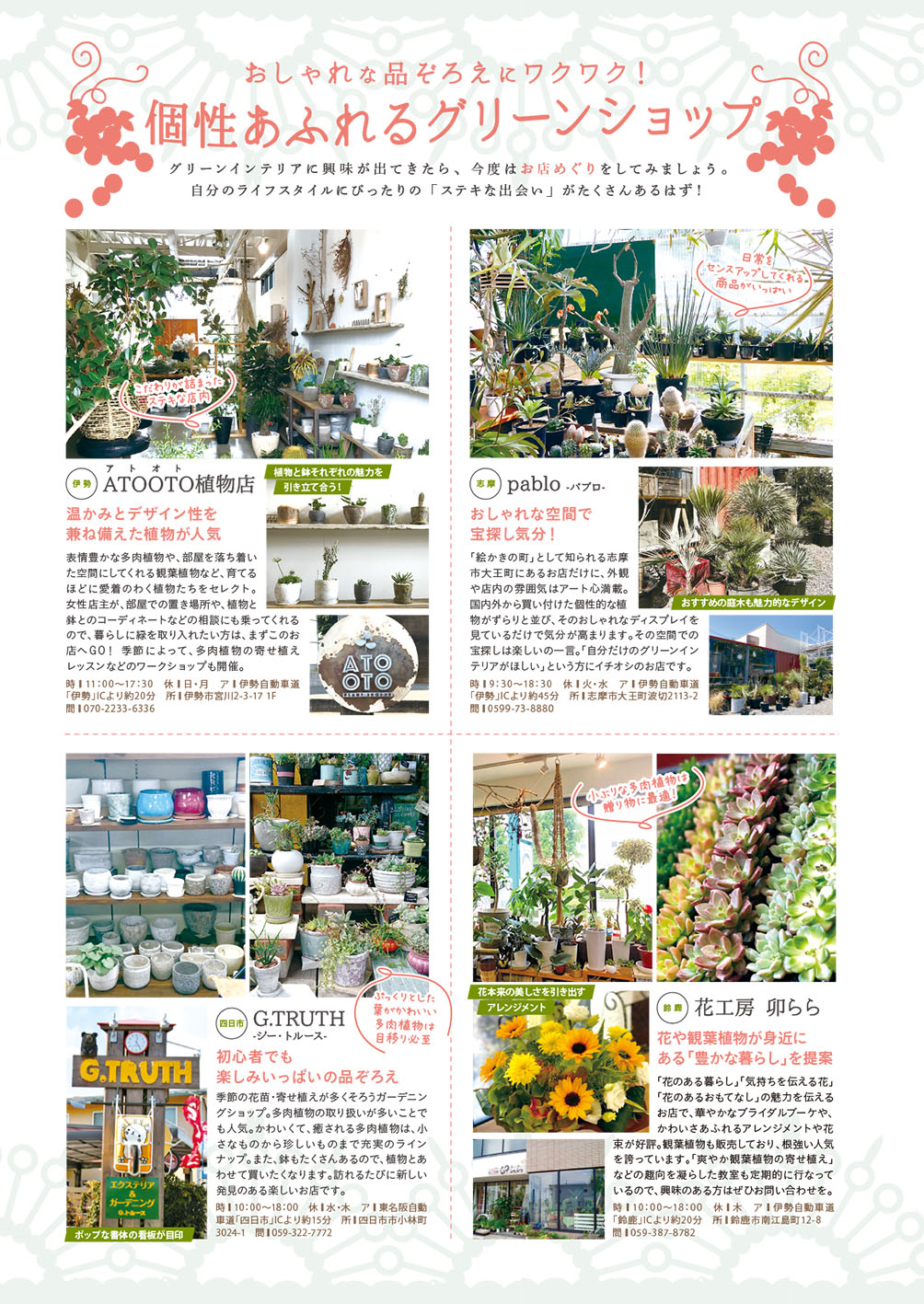 おしゃれな観葉植物をあつかうお店も必見です!!
