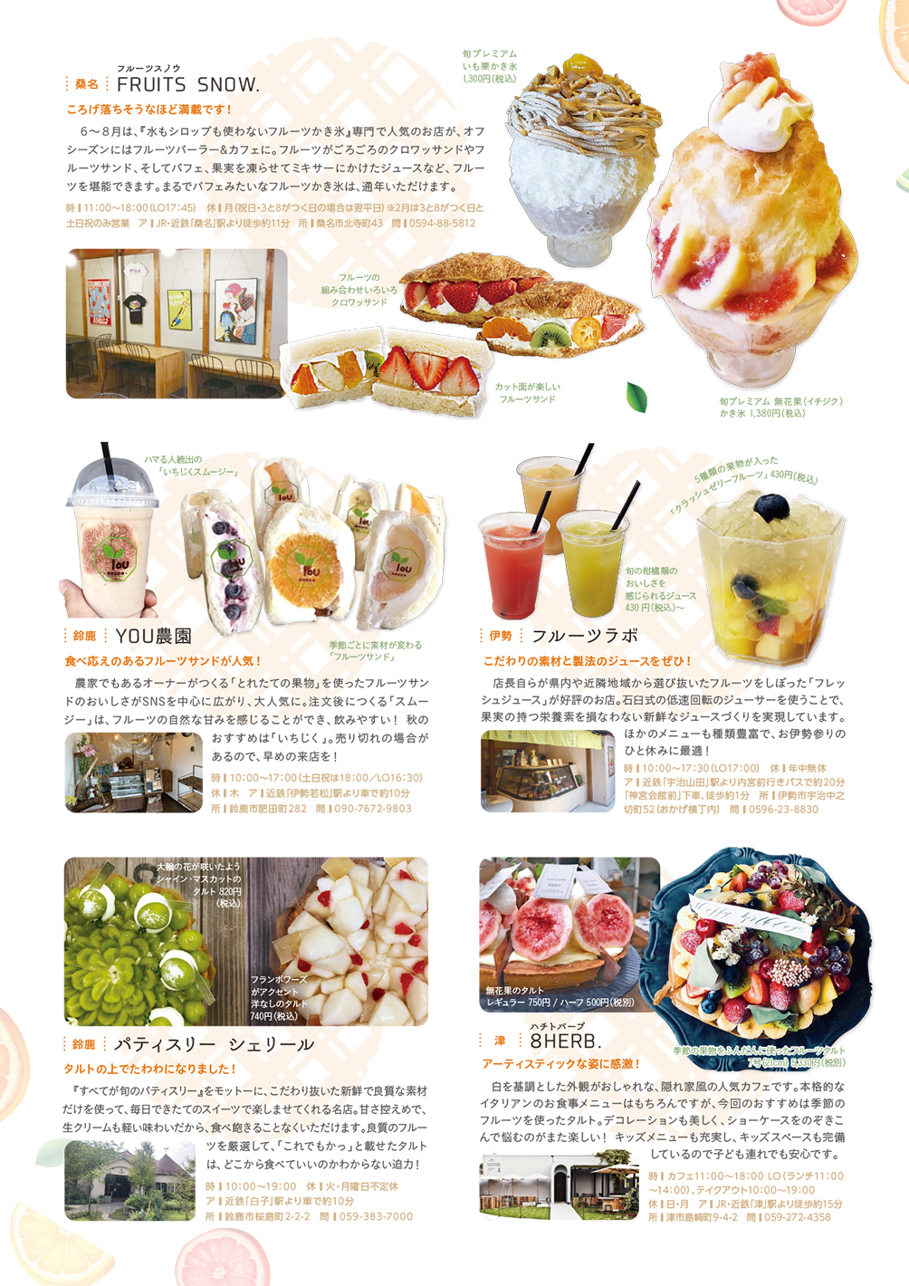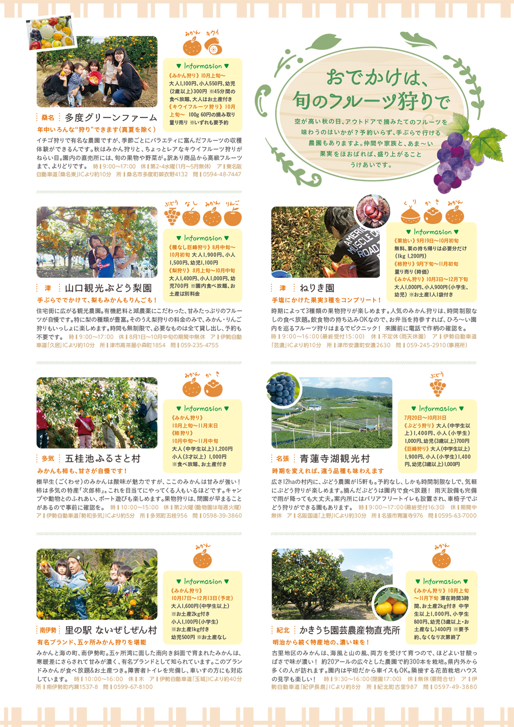 旬のフルーツを楽しめるお店、味覚狩りスポット、
