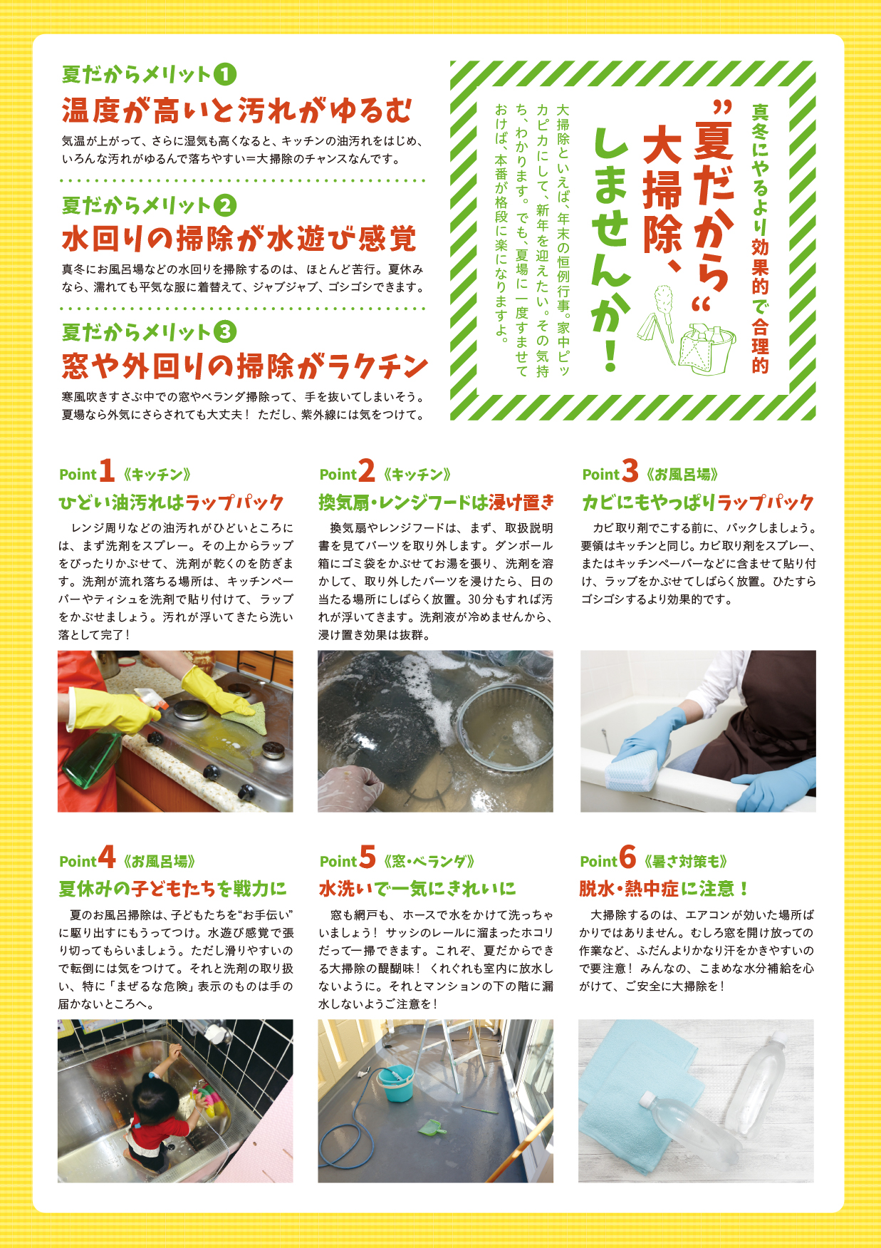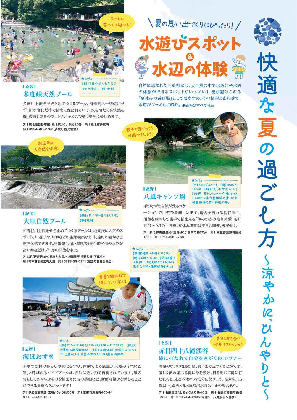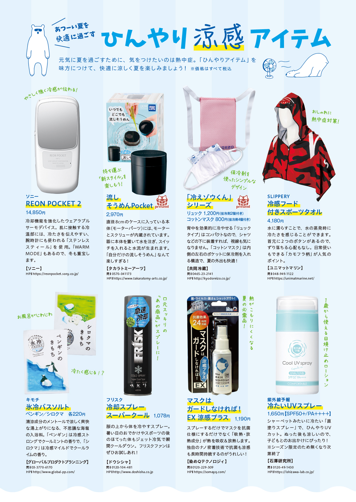 水遊びスポット&水辺の体験、夏の大掃除術、ひんやり涼感アイテム、夏スイーツをご紹介します。