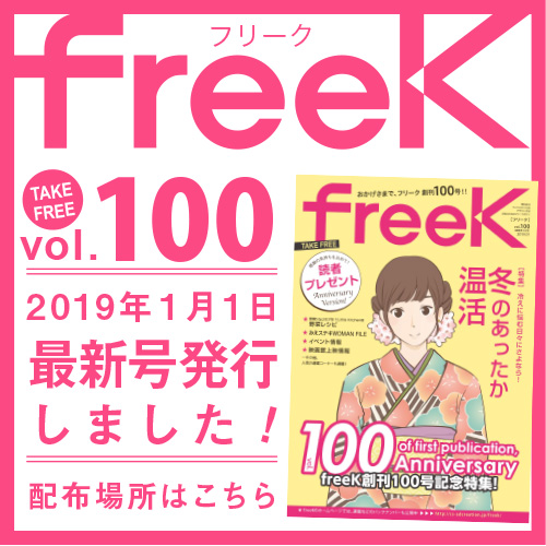 freeK Vol.100を発行いたしました。 あけましておめでとうございます。 本年1月号で、ついに100号を迎えました。 創刊からはや9年、応援してくださった読者の皆様&取材にご協力いただいた皆様のおかげで、節目の号を…