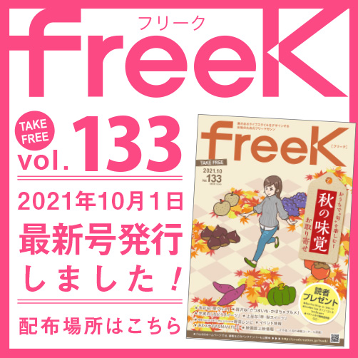 freeK Vol.133を発行いたしました。 〜 freeKの配布先・設置場所は、 ショッピングセンターに設置されているラックをはじめ、 駅での街頭配布や幼稚園・病院・企業・各種団体などへの直接配布を効果的に行う…