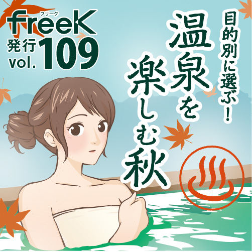 freeK Vol.109の特集は『目的別に選ぶ! 温泉を楽しむ秋』