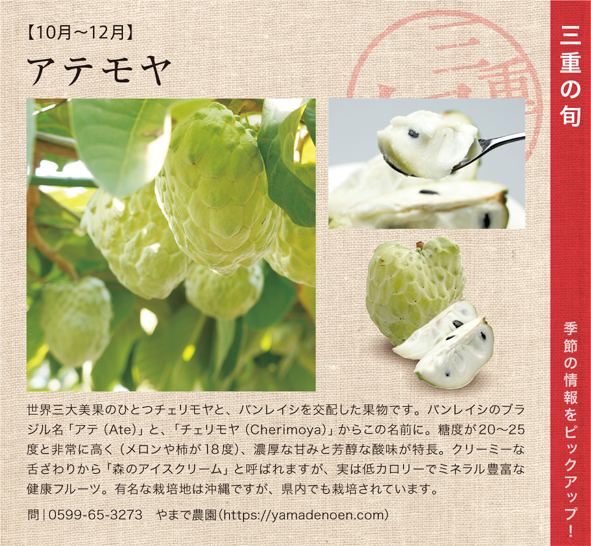 月号)の「三重の旬」コーナーでは、「アテモヤ」をご紹介。