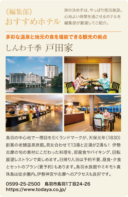 みえなび+ Vol.32(2021年8~9月号)の「《編集部》おすすめホテル」コーナーでは、